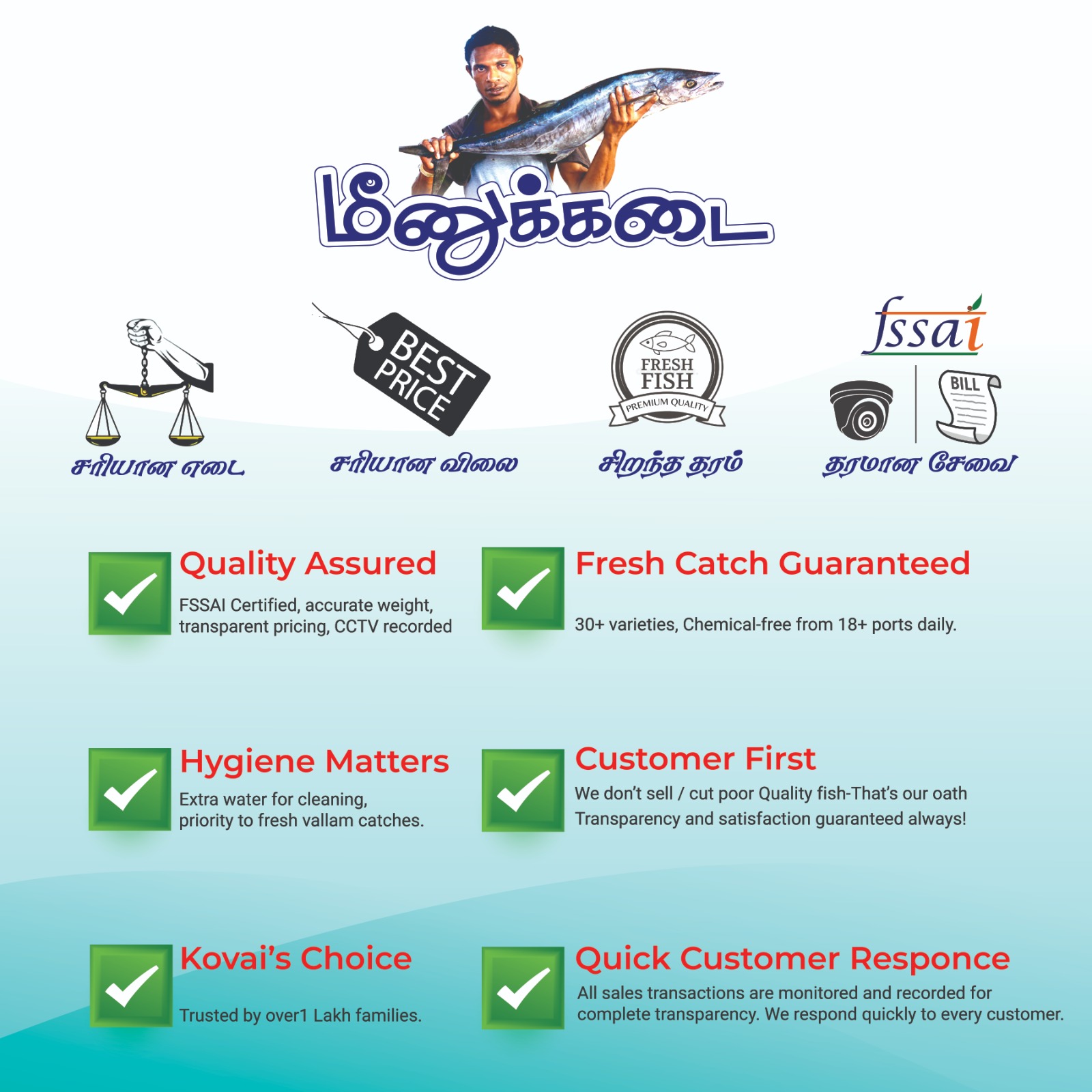 FSSAI Certified, Accurate weight, Transparent pricing, CCTV recorded.